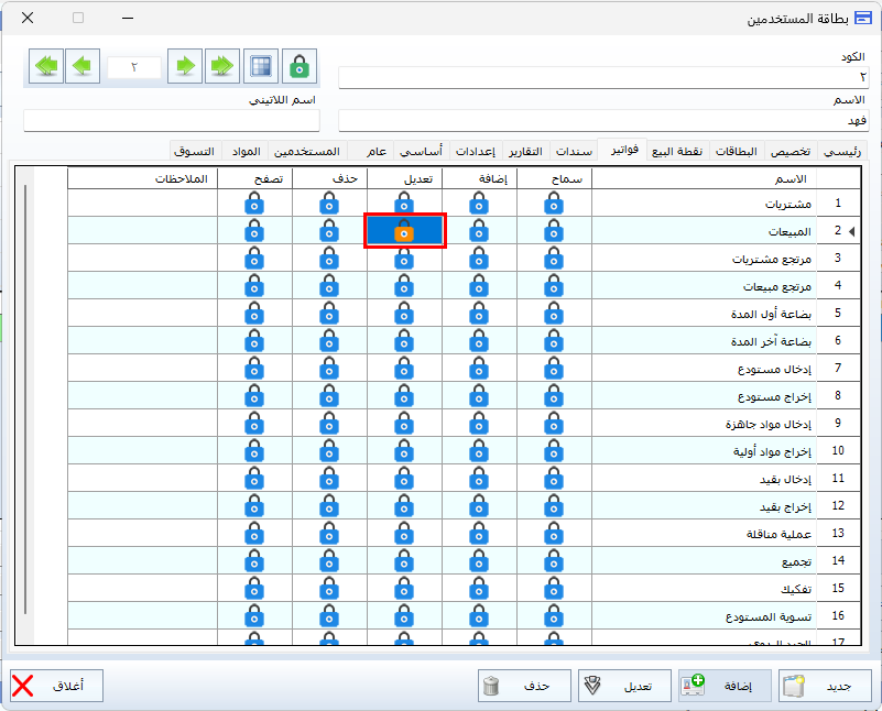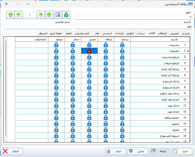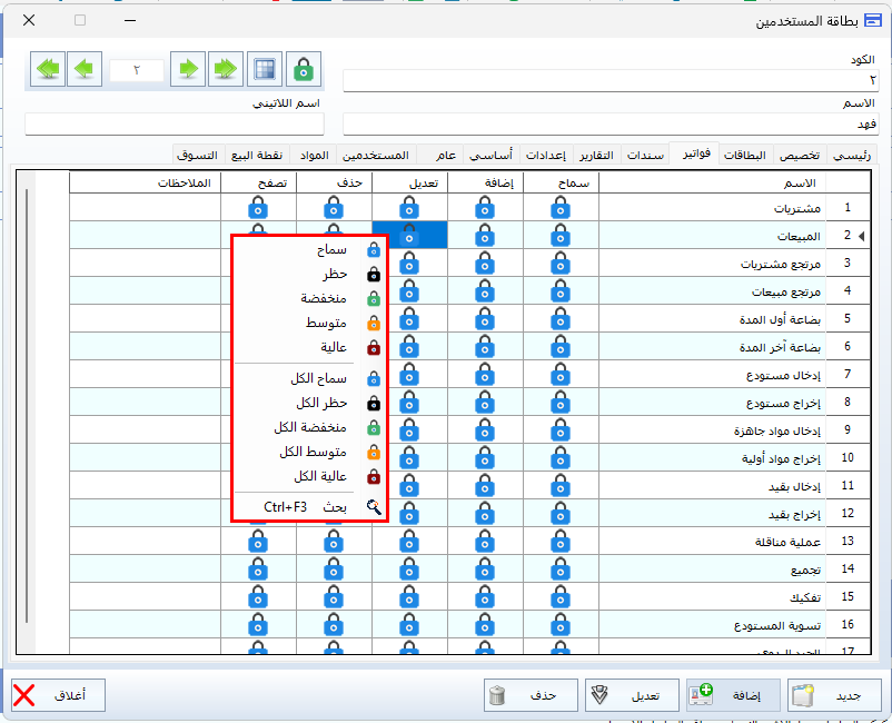 بهذا يتم التحكم في صلاحيات الحسابات وضبطها بما يتناسب مع مهام المستخدم داخل النظام