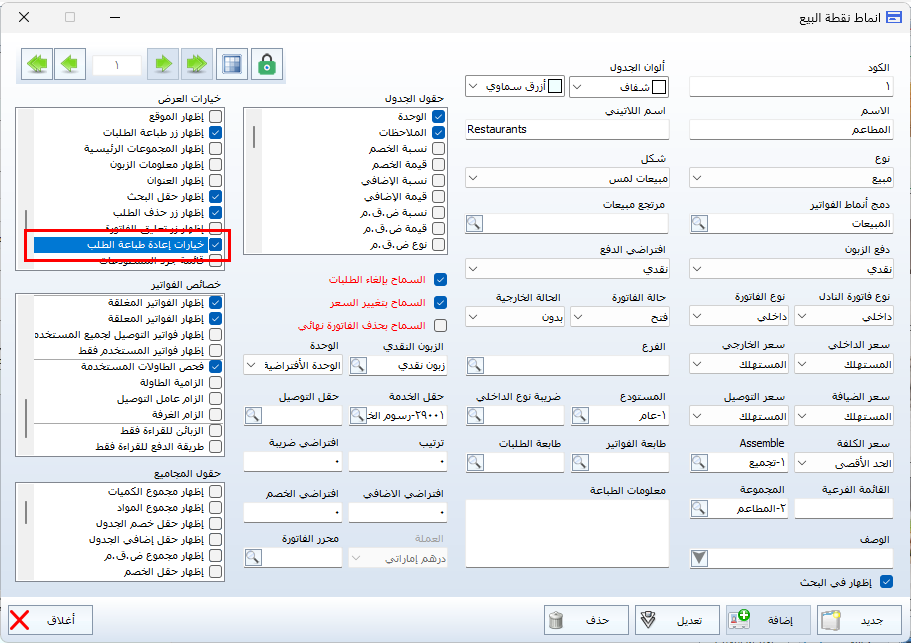 خطوات تفعيل خيار إعادة طباعة الطلب