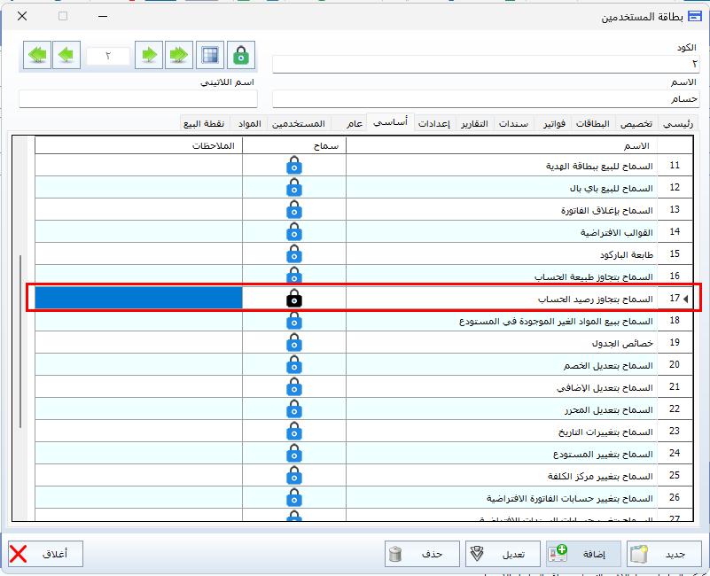 تفعيل المنع من البيع عند تجاوز الرصيد الأعظمي