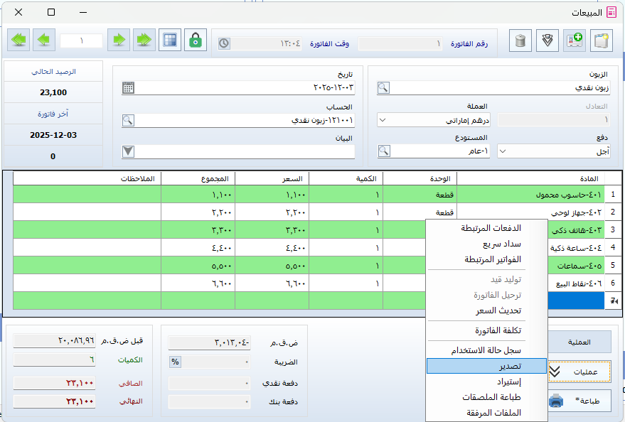 - انتقل إلى زر عمليات داخل نافذة الفاتورة.