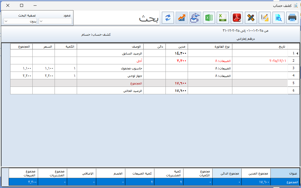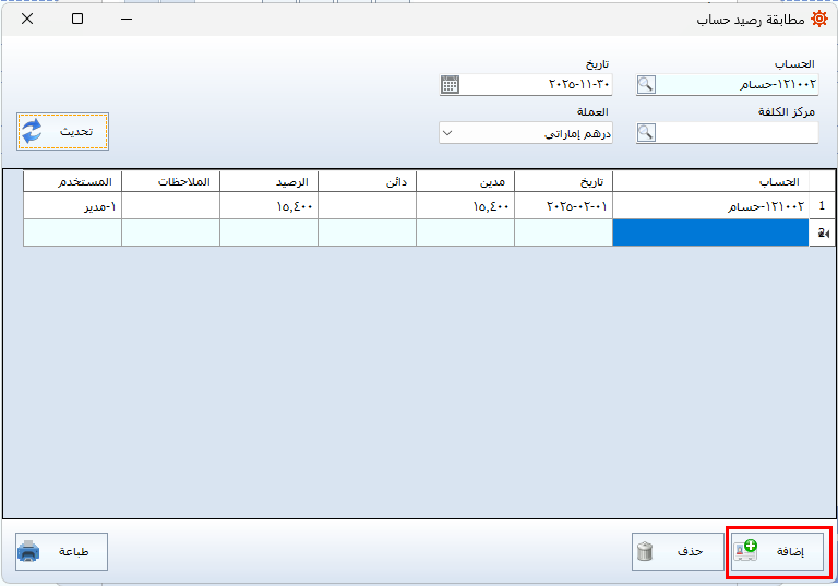 - يقوم البرنامج تلقائيًا بإحضار الرصيد في ذلك التاريخ.