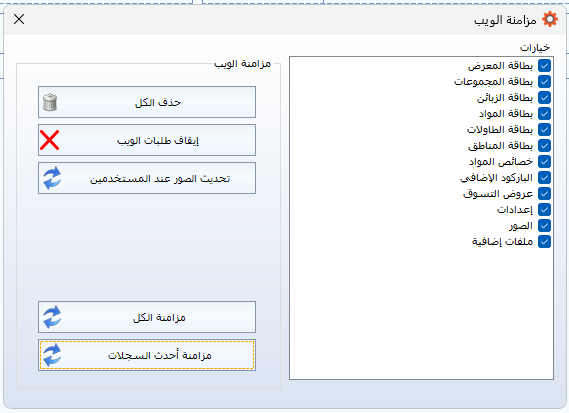 عند الضغط على "مزامنة الكل" يقوم النظام بحذف البيانات القديمة من الموقع ثم إعادة رفع جميع السجلات من جديد.
