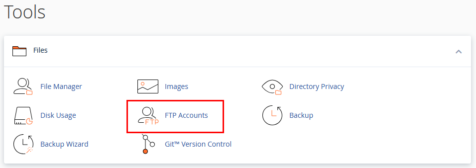 - اضغط على FTP Accounts ضمن قسم الملفات.