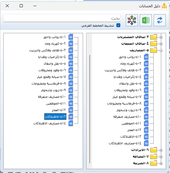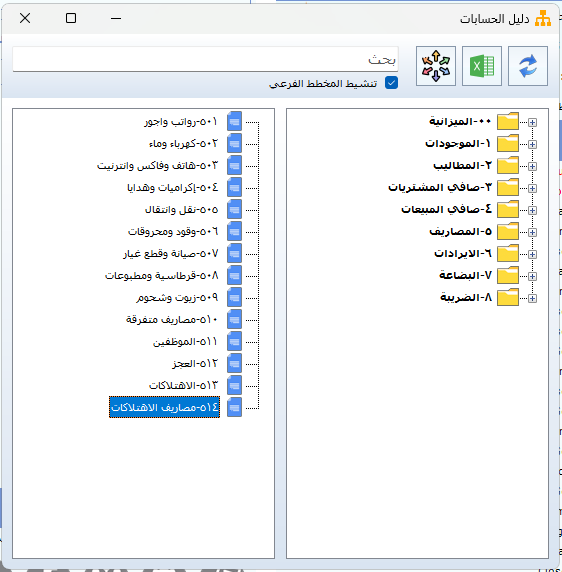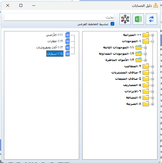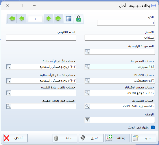 - يتبع: الحساب الرئيسي الموجودات الثابتة.