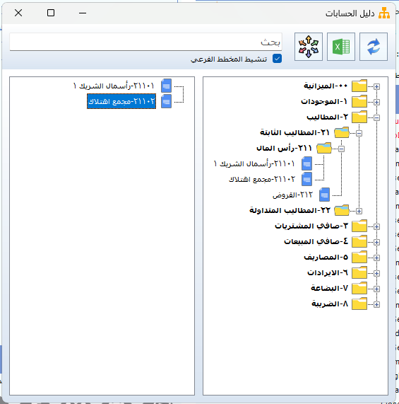 - يتبع: الحساب الرئيسي المطلوبات الثابتة / رأس المال.