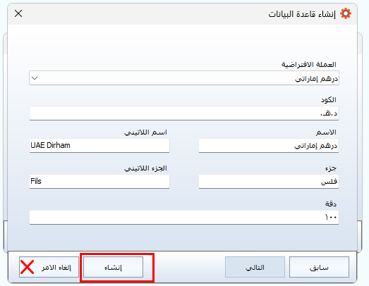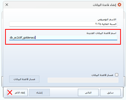 إنشاء قاعدة بيانات جديدة