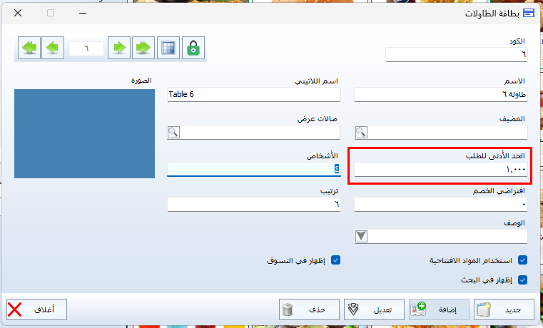 طريقة تفعيل رسوم الخدمة على الطاولات التي لا تصل إلى الحد الأدنى للطلب