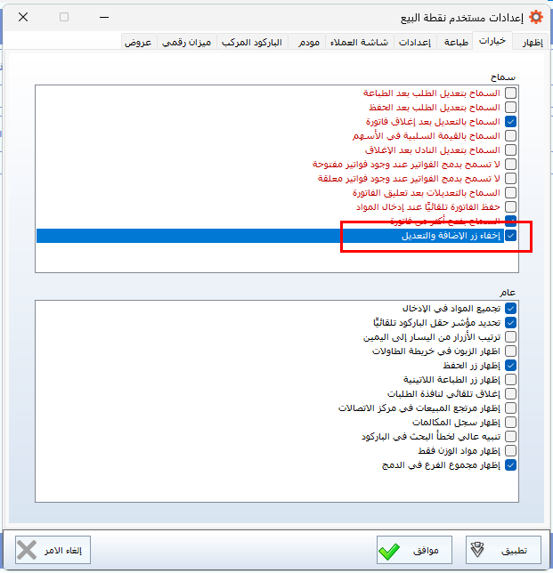 - من إعدادات نقاط البيع: