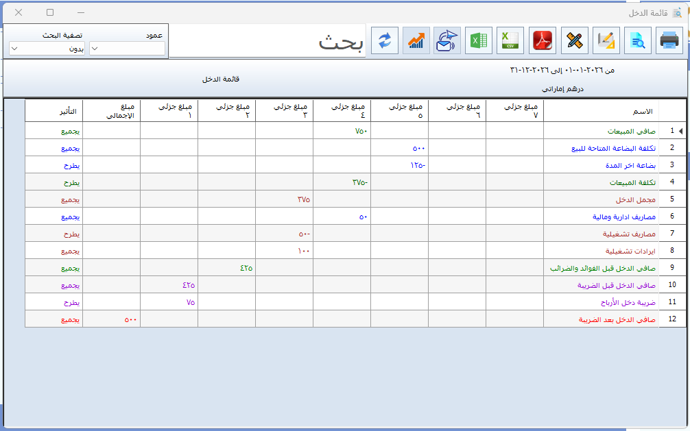 مكونات قائمة الدخل