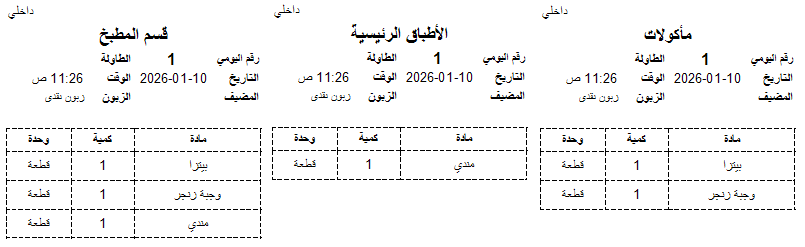 - يتم طباعة كل قسم فرعي على الطابعة الخاصة به وفق الإعدادات المحددة لكل قسم.