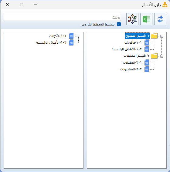 - عند الدخول إلى دليل الأقسام، ستظهر الأقسام الفرعية مدرجة تحت الأقسام الرئيسية الخاصة بها.