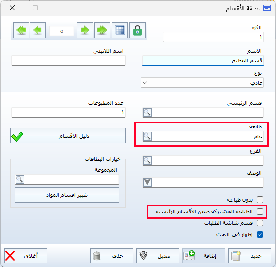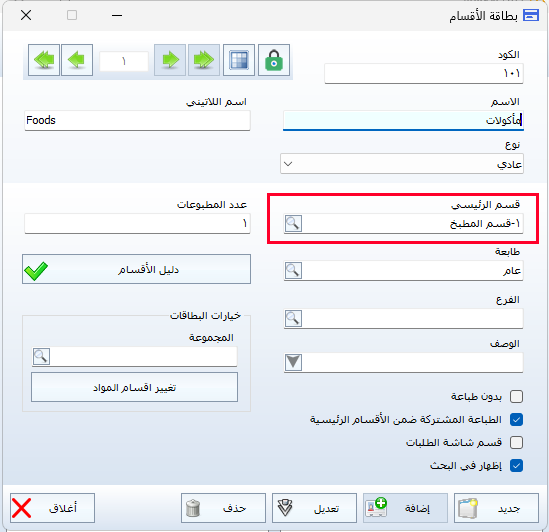 تُستخدم هذه الميزة عند الرغبة في تخصيص طابعة واحدة لقسم رئيسي، بحيث تقوم بطباعة جميع الطلبات أو الفواتير الخاصة بالأقسام الفرعية التابعة له، وذلك لتنظيم عملية الطباعة وتسهيل إدارتها.