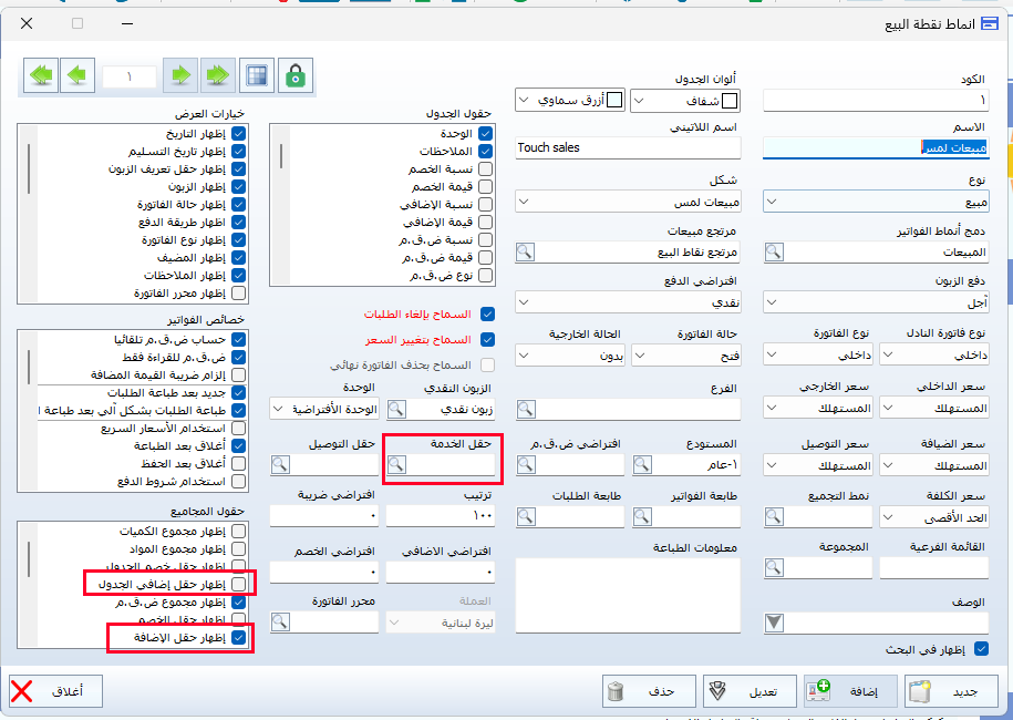- استخدام مادة خدمية: يمكن تسجيل رسوم التوصيل كمادة أو منتج خدمية داخل الفاتورة، بحيث تُضاف المادة مباشرة كرسوم توصيل، ويمكن ضبطها لتكون خاضعة للضريبة أو معفاة حسب الحاجة.