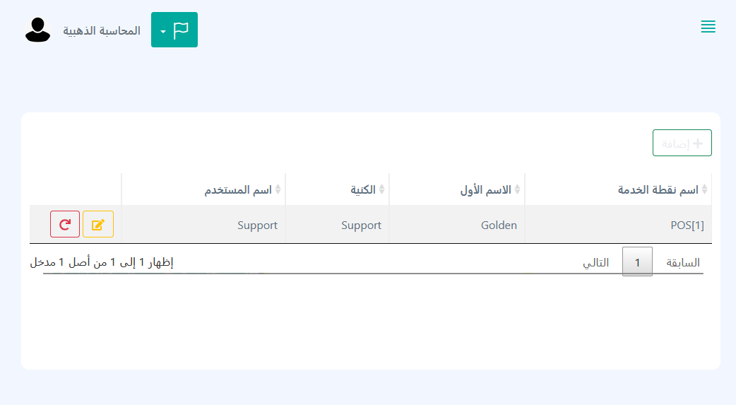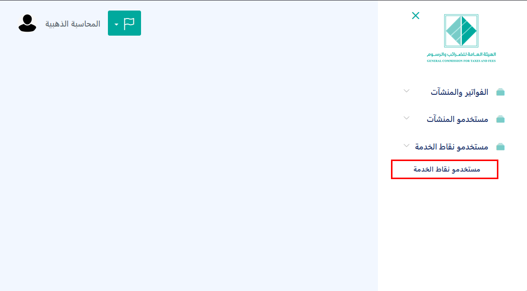 - بعد تسجيل الدخول، يتم الانتقال إلى قسم مستخدمو نقاط الخدمة.