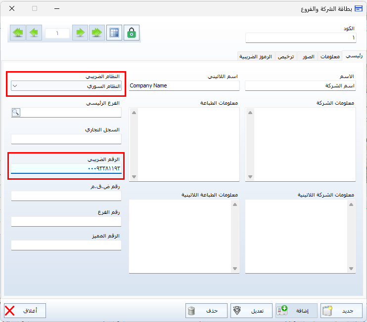 - الرقم الضريبي