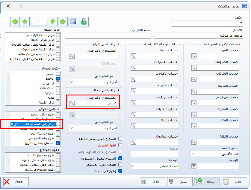 - اختيار مرتجع أمر مناقلة كنمط معتمد.