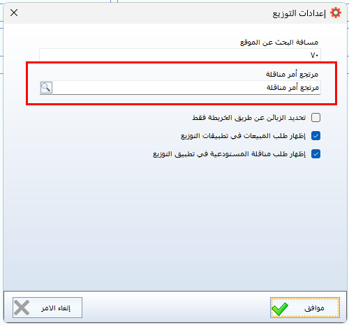 ربط مرتجع أمر المناقلة مع نظام التوزيع