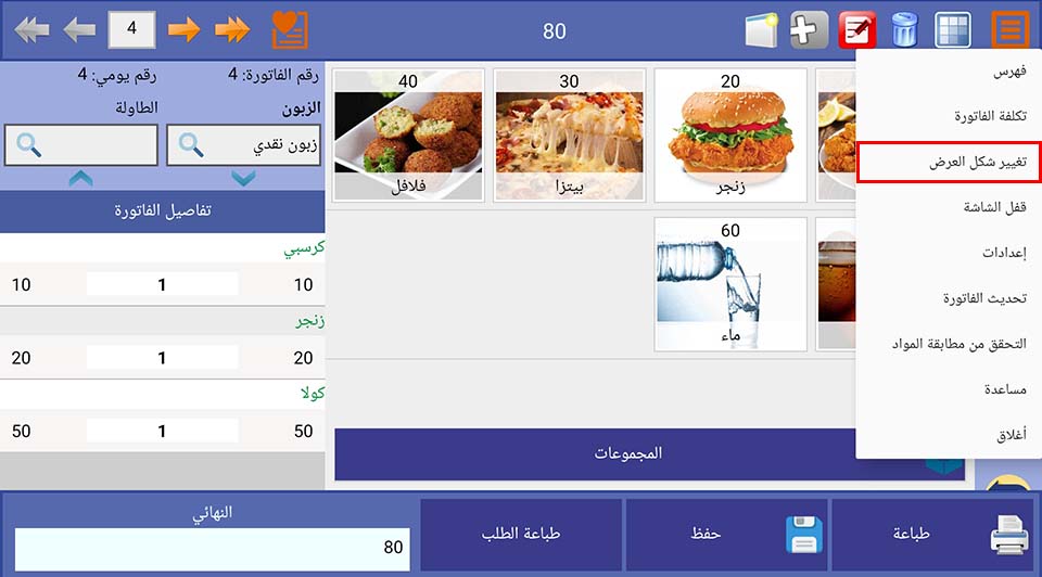 يُوفّر نظام نقاط البيع العامل على نظام الأندرويد شكلين مختلفين لواجهة العرض، وذلك بما يتناسب مع احتياجات المستخدمين وتفضيلاتهم في الاستخدام.