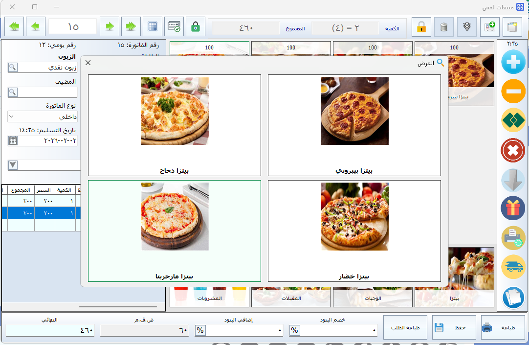 - يتم تفعيل خيار الالتزام بالوحدات في العرض، حتى يُطبّق العرض حسب حجم البيتزا (صغير – وسط – كبير).