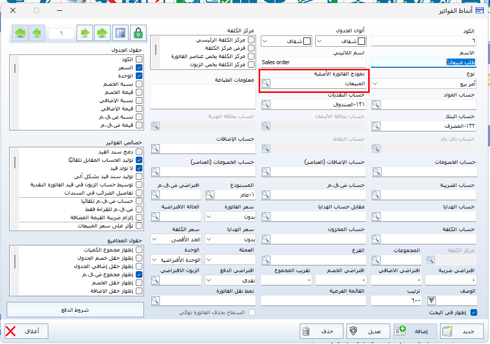 الخطوة الأولى: ربط طلب المبيعات بنمط الفاتورة